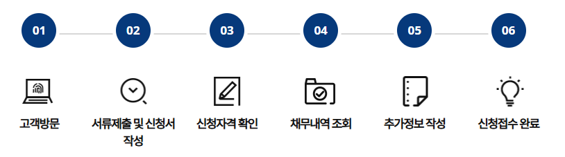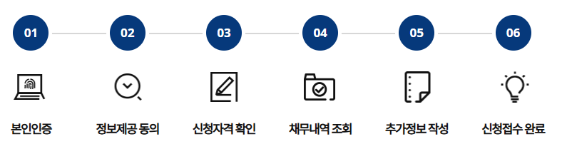 - 원금조정, 이자 및 연체 이자 감면, 장기분할상환 및 추심중단, 채무조정 정보등록 해제요건 완화 등 혜택 대상